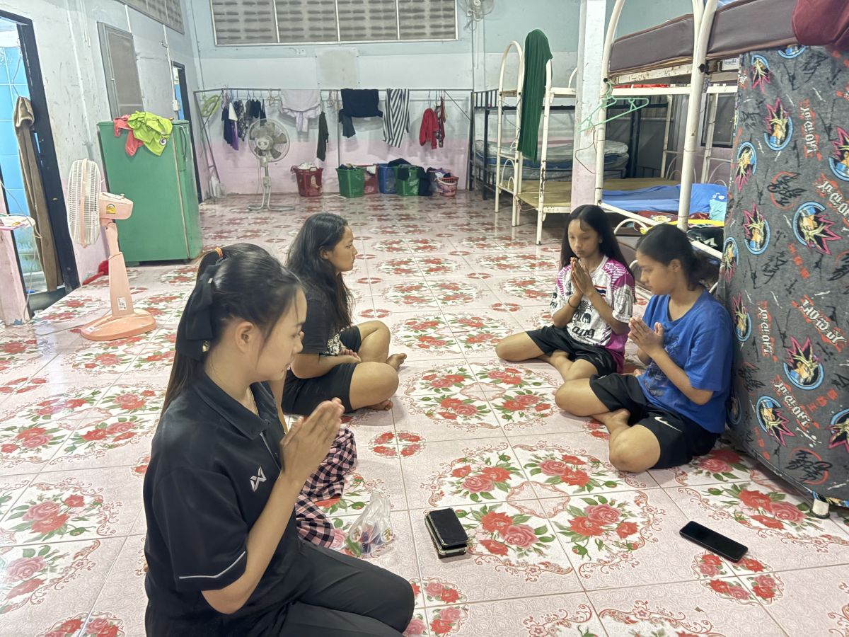 สถานการณ์ปกติ ครูเวรดูแลนักเรียนสวดมนต์เข้านอนเรียบร้อยค่ะ