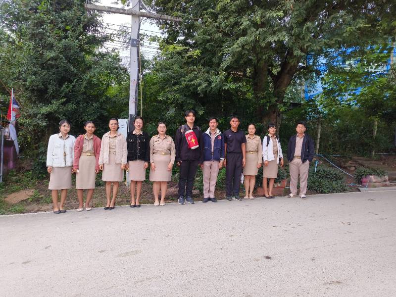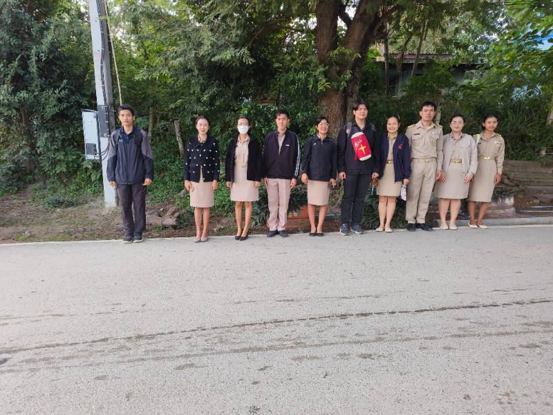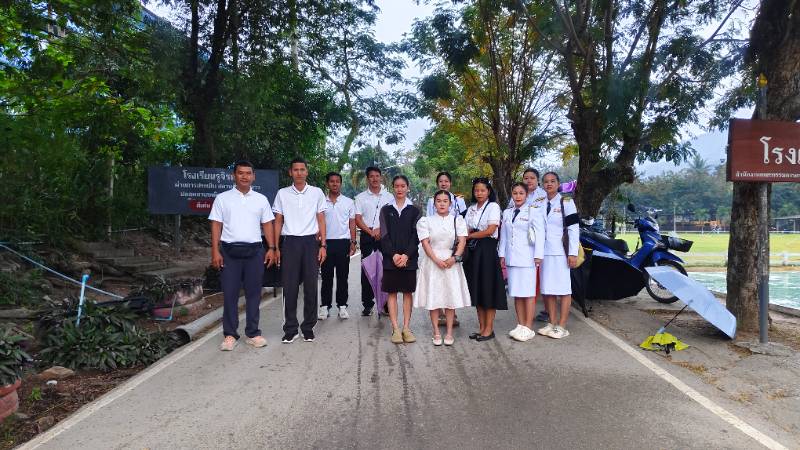 เวรปฎิบัติหน้าที่ ตรวจกรเป๋านร. ก่อนเข้าเรียน มีการรับการตรวจเยี่ยมจากองคมนตรี