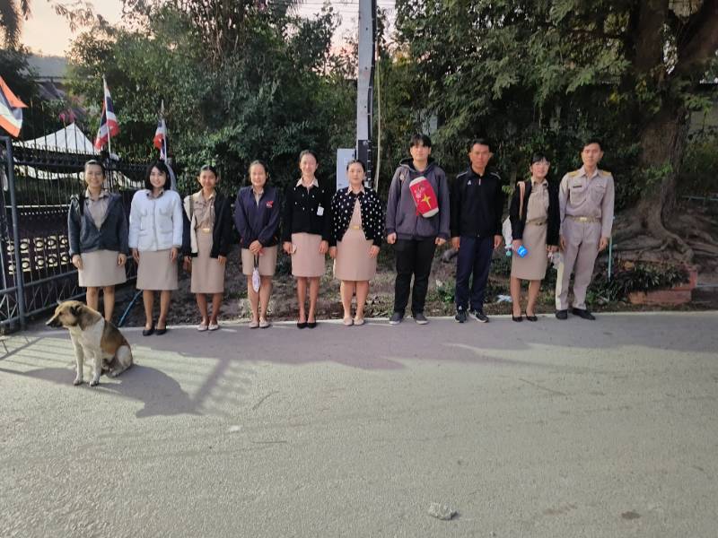 ครูเวรรอรับนักเรียนและตรวจความเรียบร้อยก่อนนักเรียนเข้าโรงเรียน