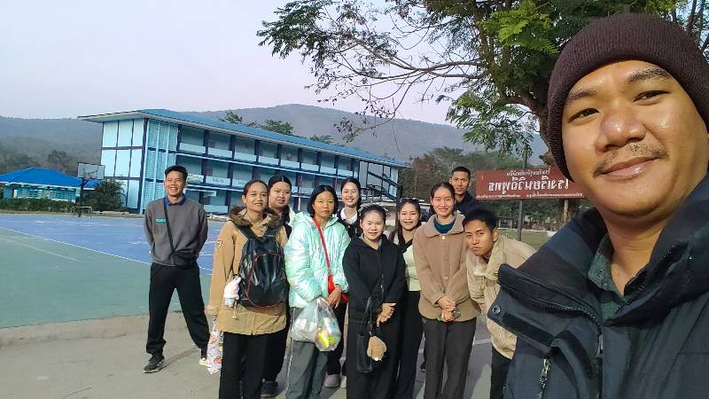 เหตุการณ์ทั่วไปปกติ ครูเวรตรวจความเรียบร้อยและตรวจกระเป๋านักเรียน นักเรียนแต่งชุดกีฬาสี เพื่อแข่งขันกีฬา